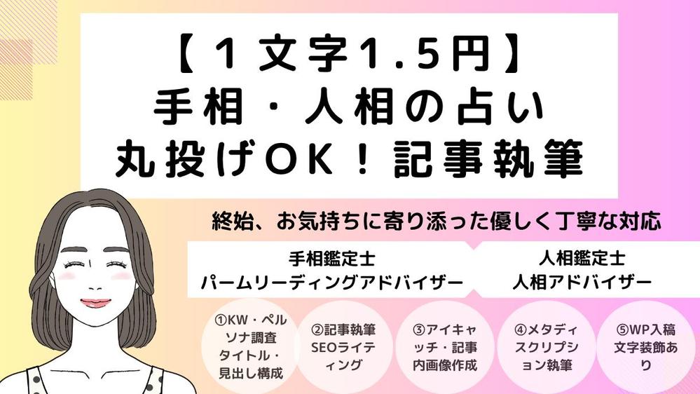 手相・人相に関する専門的な知識を用いてさまざまな観点(恋愛・仕事・人間関係等)から記事執筆を行います。